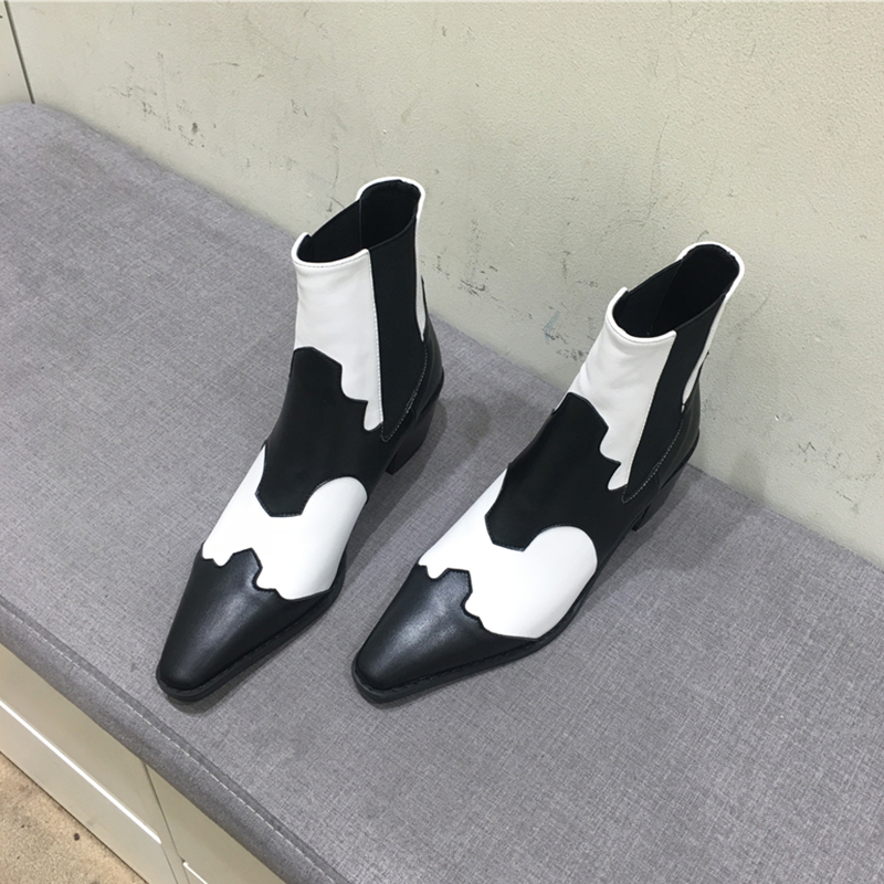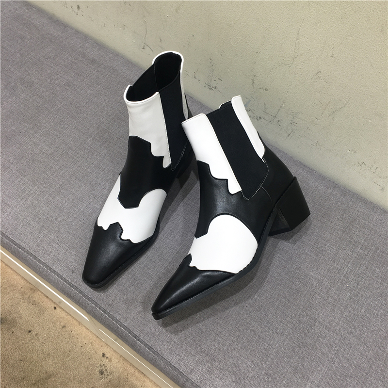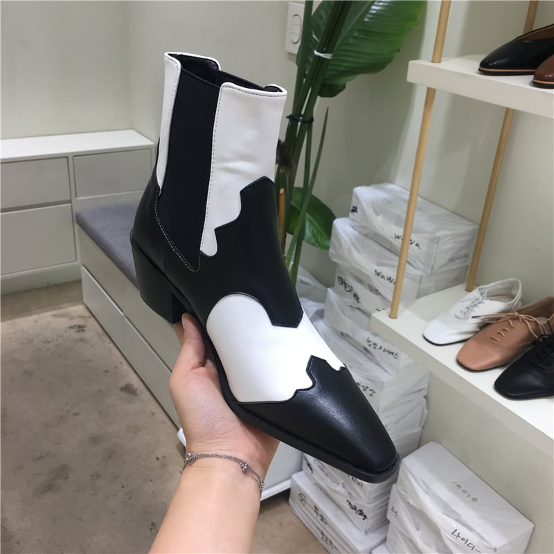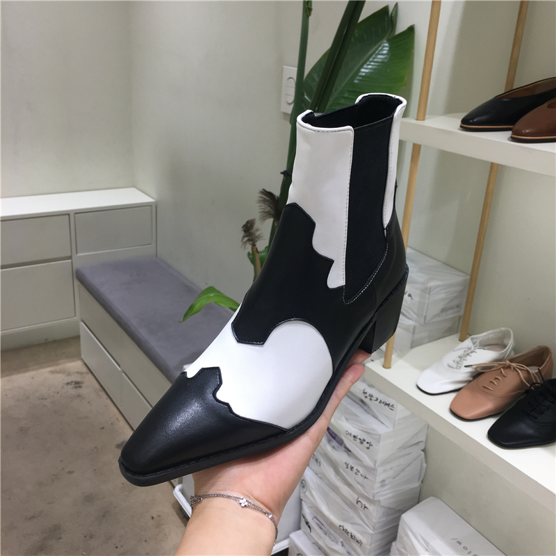 LUXE SEVEN DESIGN HEELED WESTERN ANKLE BOOTS IN BLACK AND WHITE