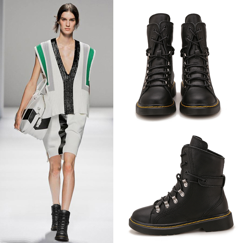 HEIKE VEGOS BRITISH DESIGN LEATHER BOOTS WITH EYELET DETAILS IN BLACK