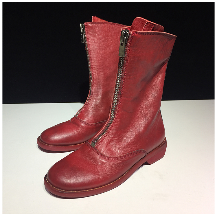 MAXCO ZEEGA GUIDO THIN LEATHER ZIP FRONT ANKLE WOMEN BOOTS