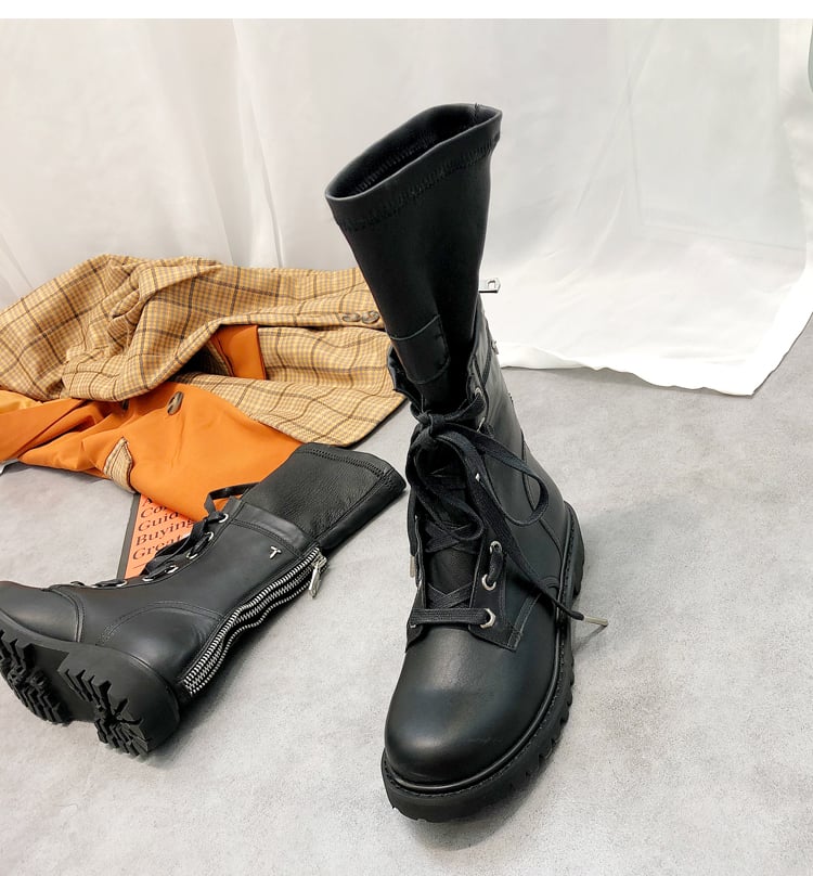 DONNA NOTTE LIMAO BRITISH STYLE SOCKS ANKLE LEATHER BOOTS IN BLACK