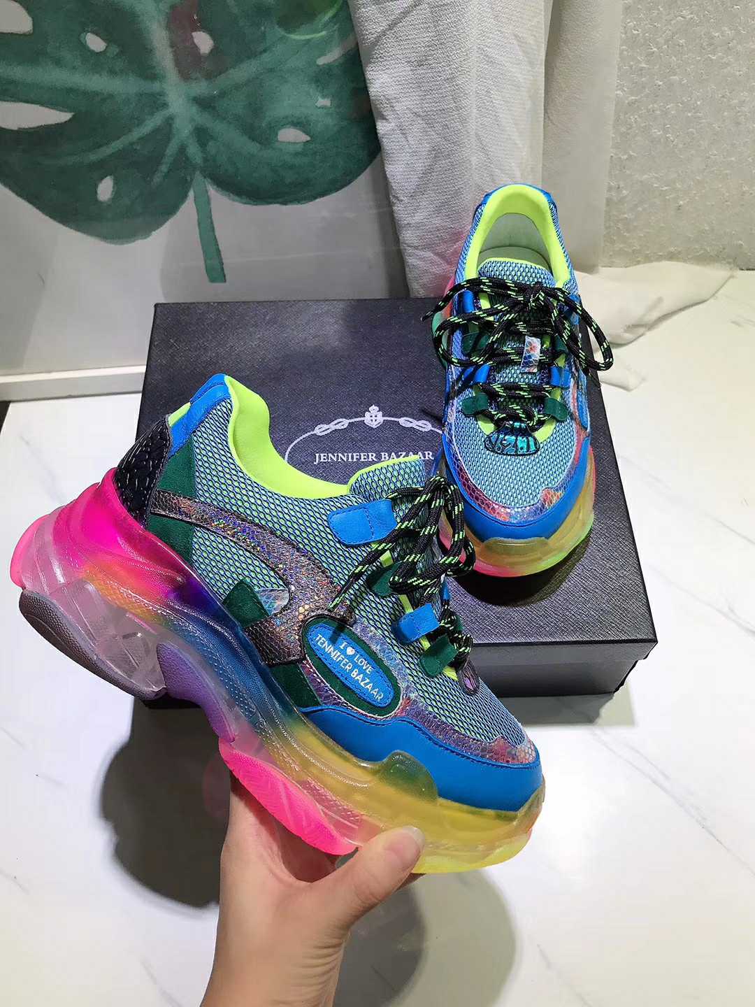 JENNIFER BAZAAR GANZOPA TRANSPARENT CHUNKY SOLE WOMEN SHOES IN RAINBOW COLOR