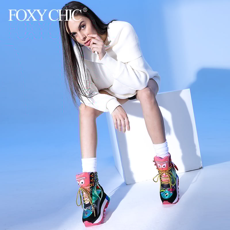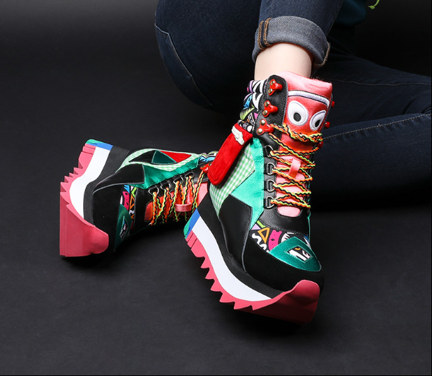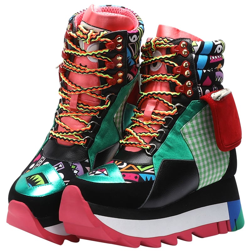 FOXY CHIC GRAFFITI CARTOON FIGURE HIGH TOP CHUNKY PLATFORM SNEAKER BOOTS