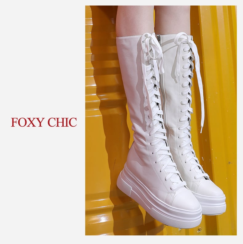 FOXY CHIC SHIRLEY ANDERSON DESIGN CHUNKY HIGH HEELED LEATHER BOOTS