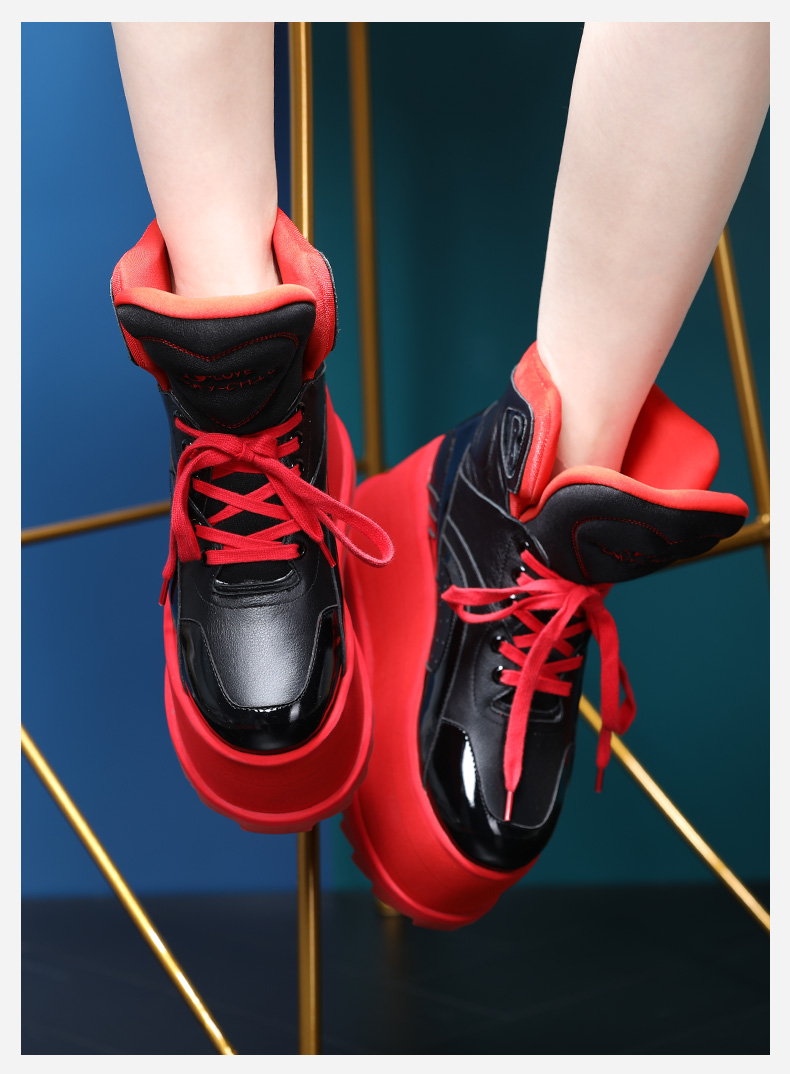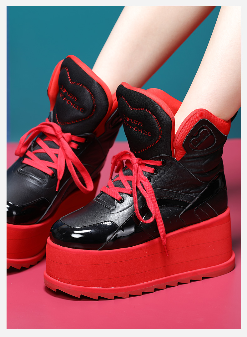 FOXY CHIC DELILAH KATE STYLE CHUNKY PLATFORM HIGH TOP WOMEN BOOTS IN RED