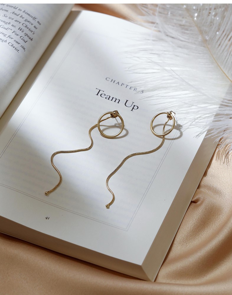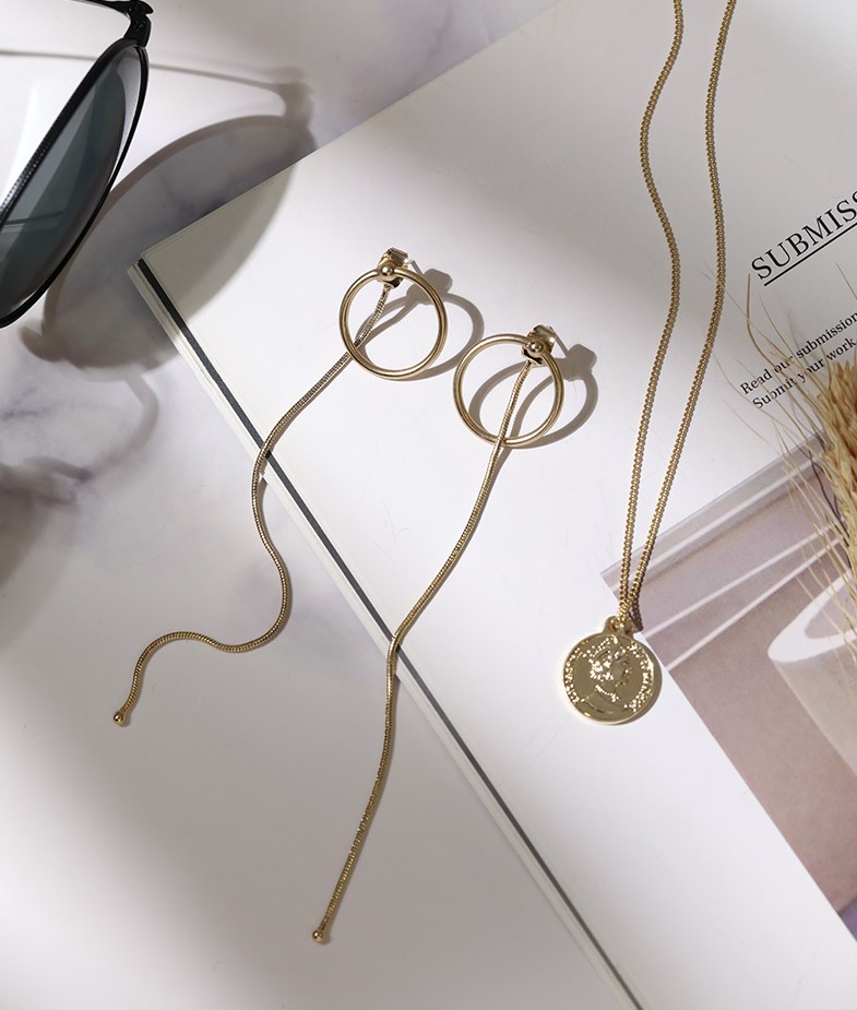 UZL DESIGN HOOP CHAIN DROP EARRINGS IN GOLD PLATED