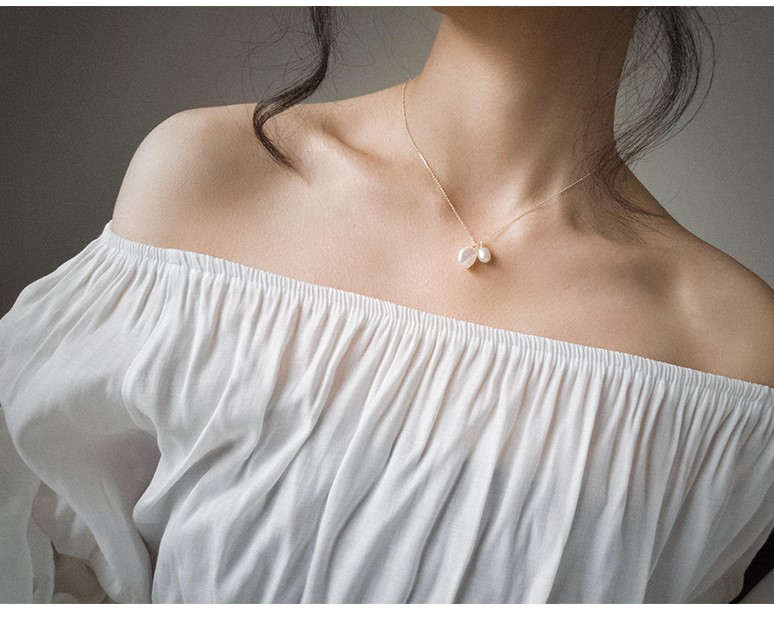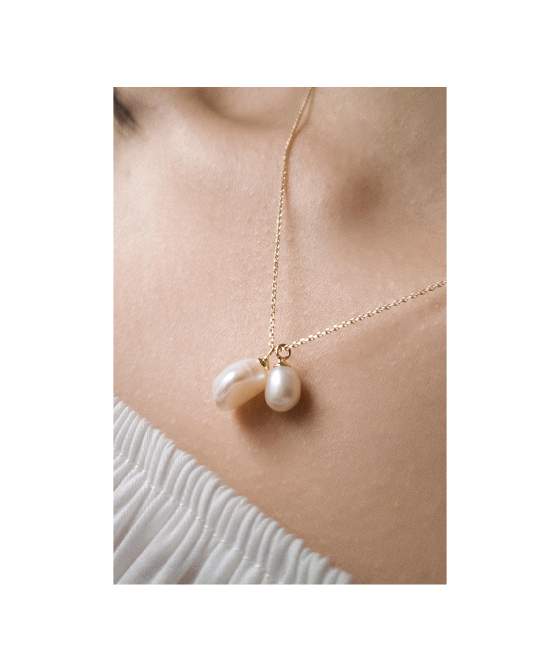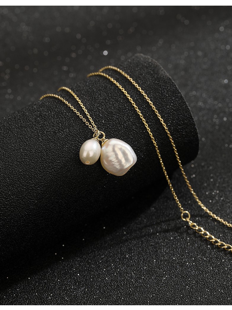 UZL DESIGN STERLING SILVER EXCLUSIVE NECKLACE IN GOLD WITH DOUBLE PEARL