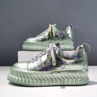 ALISANDRO MOQUEN GRAFFITI CARTOON CHUNKY SOLE LEATHER SNEAKER