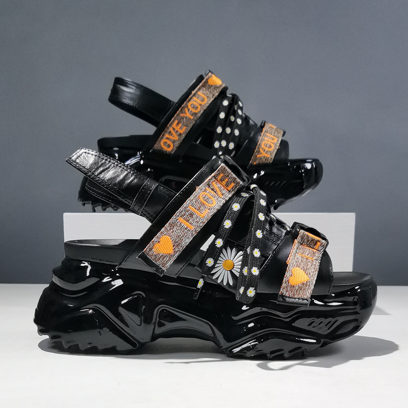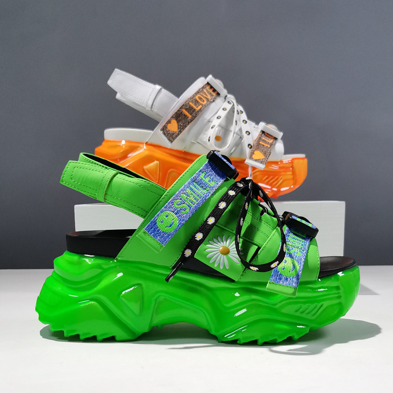 GIMMO JELLY CHUNKY SOLE OPEN TOE CASUAL LEATHER SANDALS