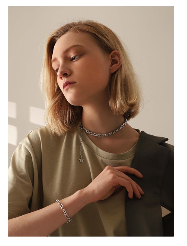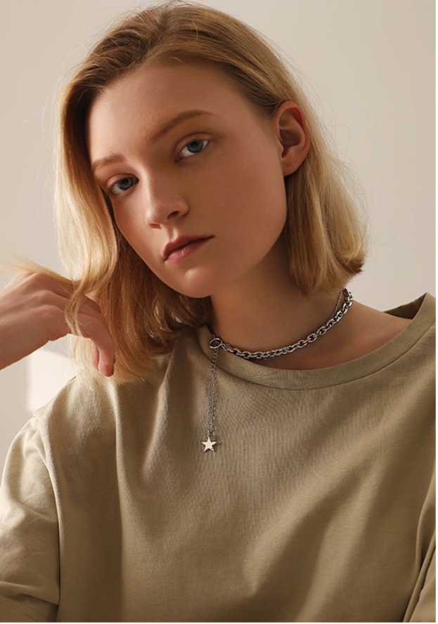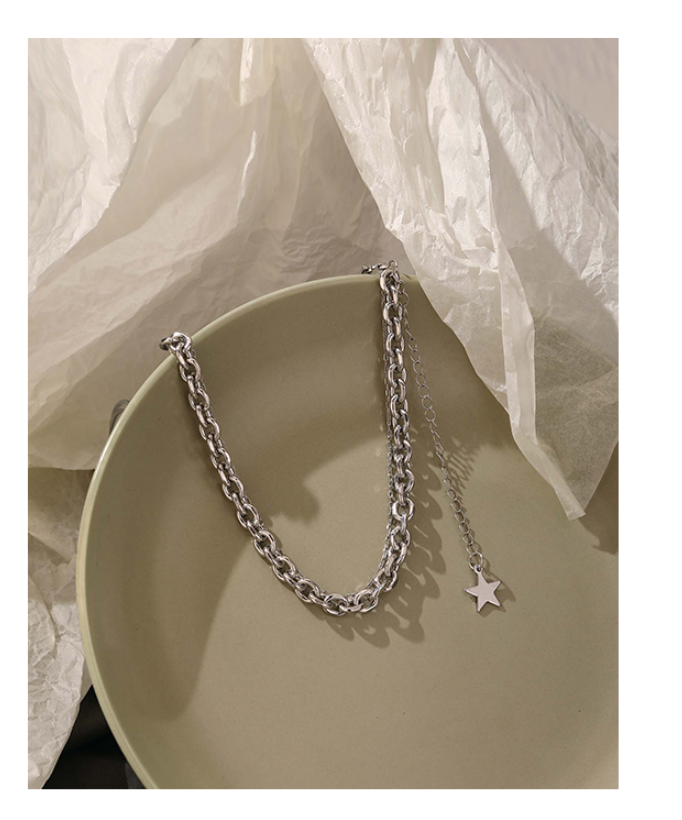 UZL DESIGN CHUNKY CHAIN CHOKER WITH STAR PENDANT IN GOLD PLATED