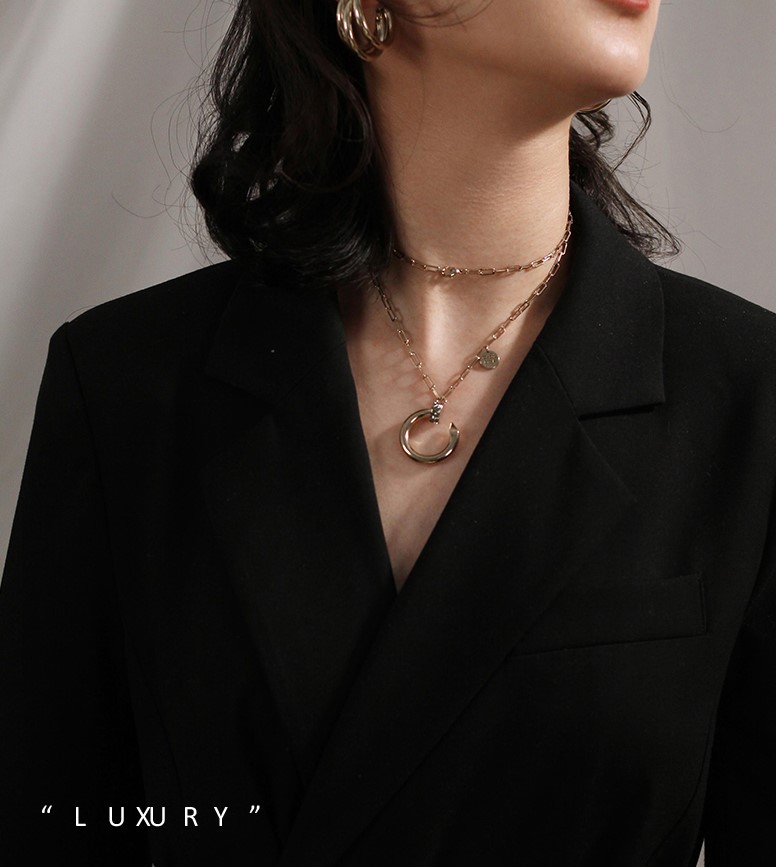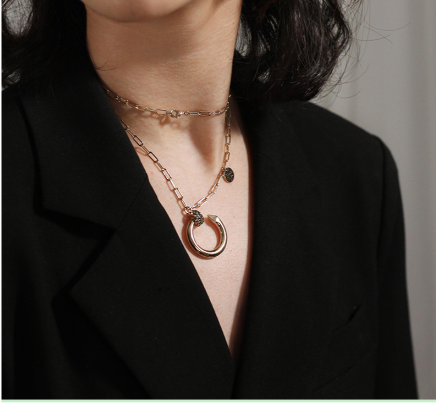 Chunky chain Hoop pendant Lobster clasp fastening Adjustable chain length