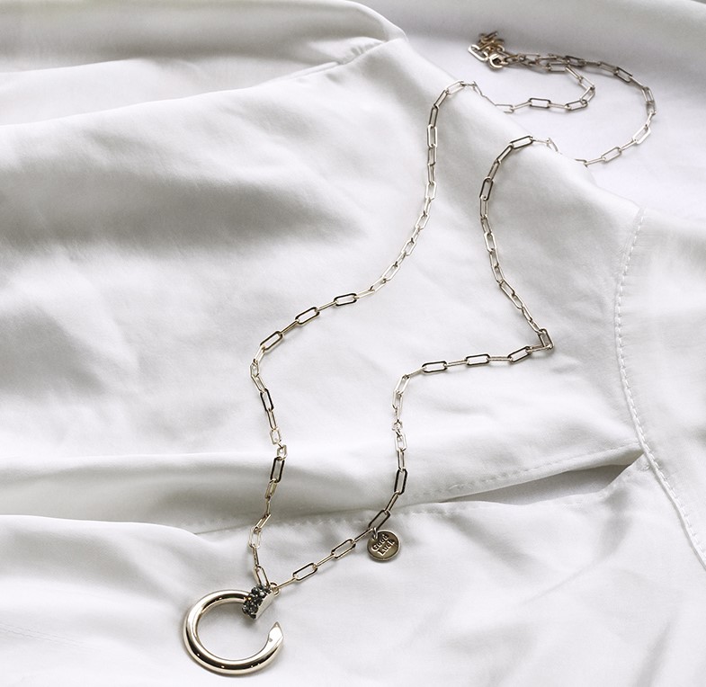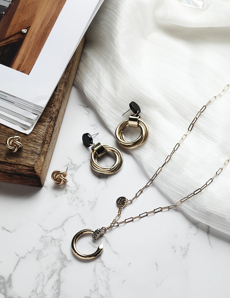 UZL DESIGN GOLD PLATE CHAIN NECKLACE WITH OPEN HOOP PENDANT