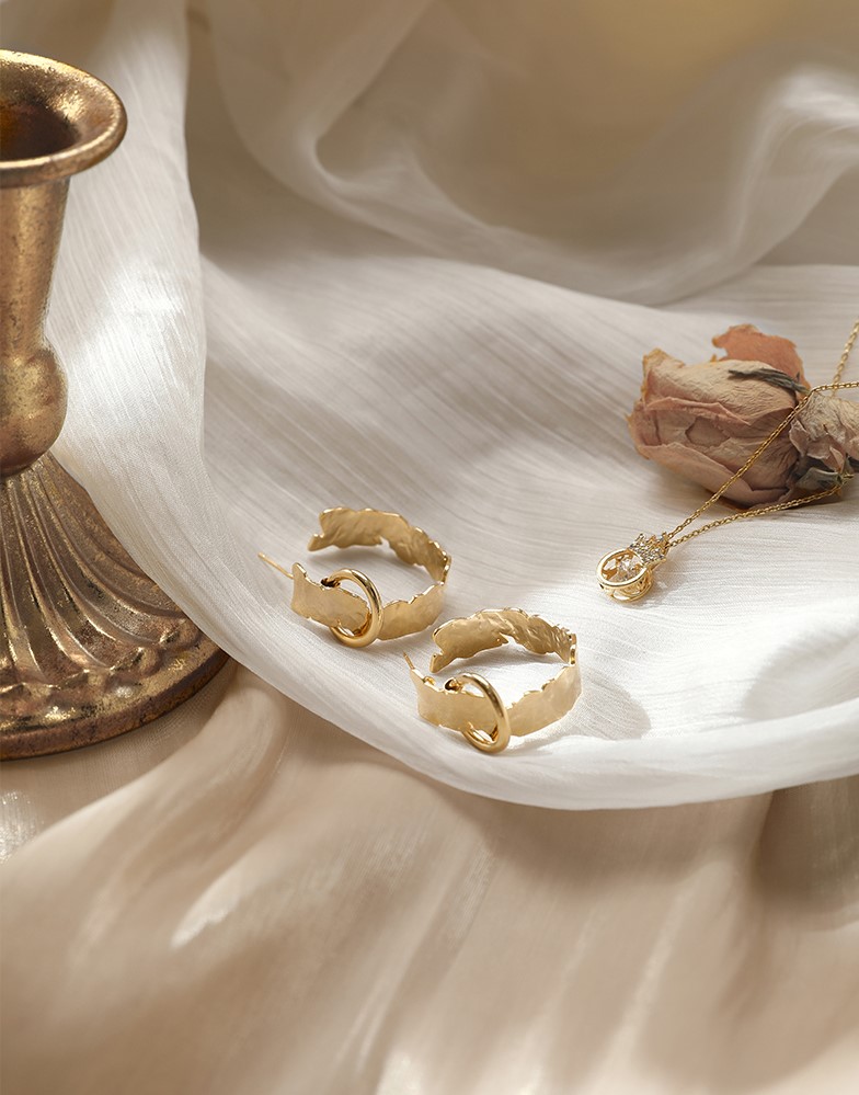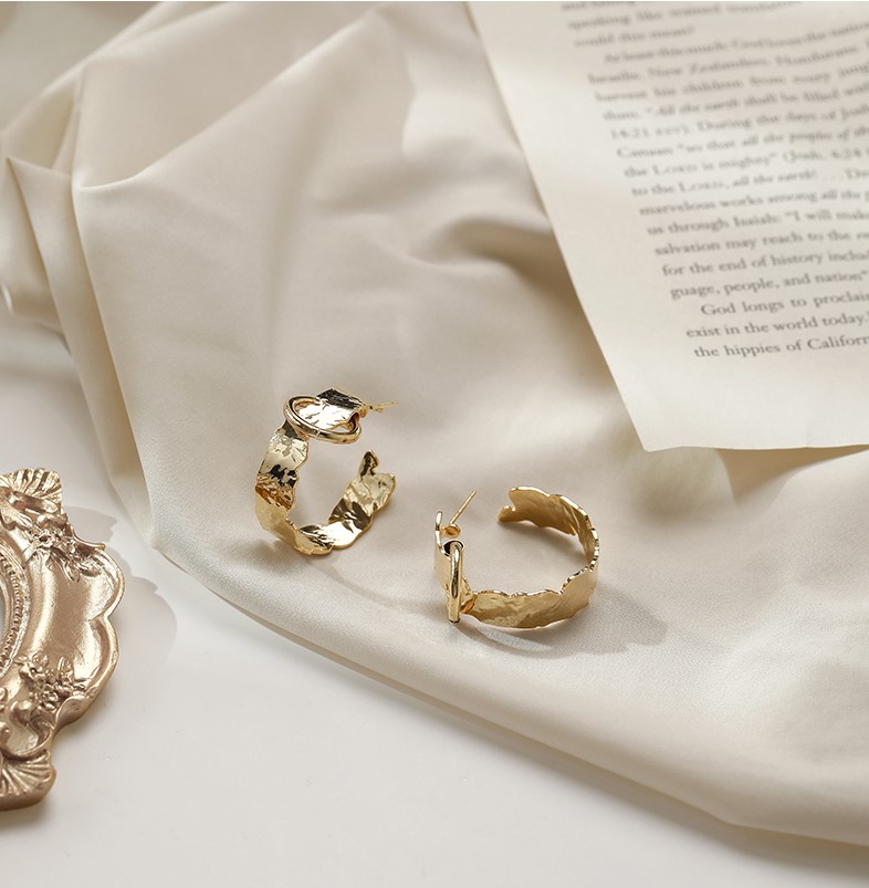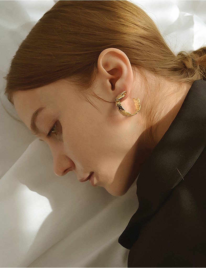 UZL DESIGN TEXTURE HOOP EARRINGS IN GOLD PLATED
