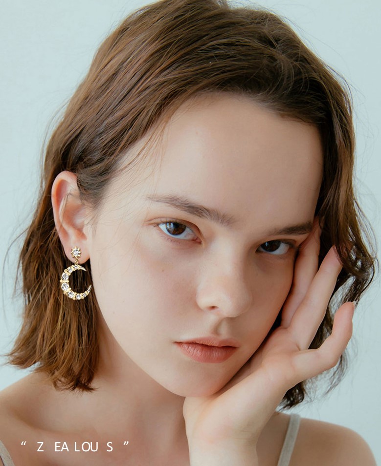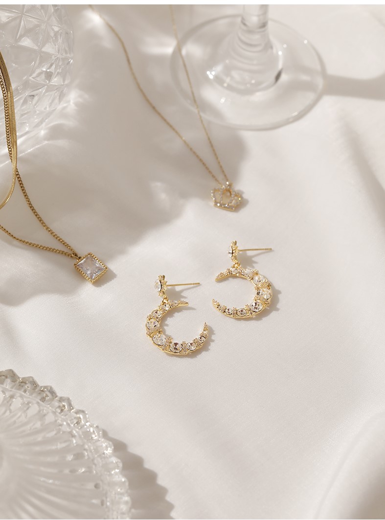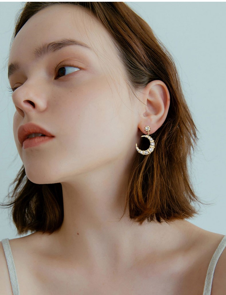 UZL VINTAGE INSPIRED CRYSTAL MOON AND STAR DESIGN EARRINGS IN GOLD PLATED