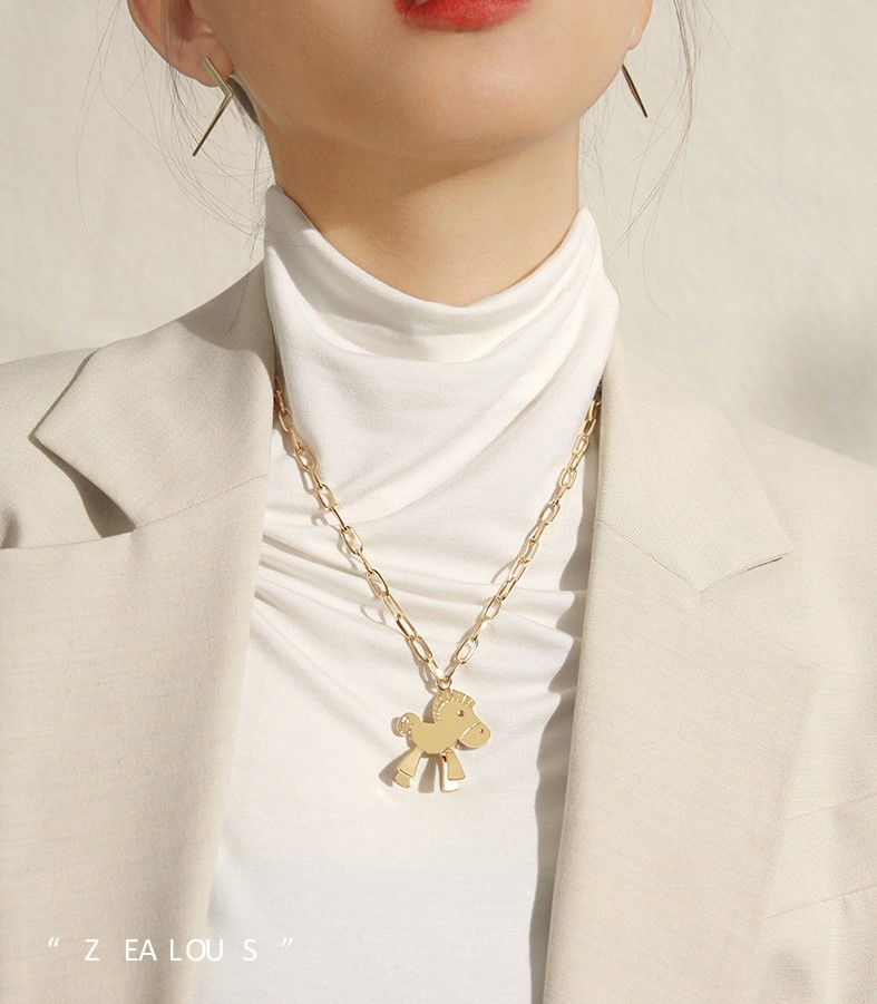 UZL PONY PENDANT NECKLACE WITH HARDWARE CHAIN IN GOLD PLATED