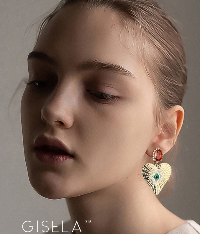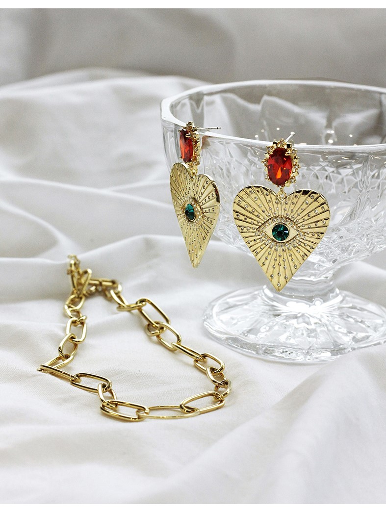 UZL DESIGN EMBELLISHED HEART DROP EARRINGS IN GOLD PLATED
