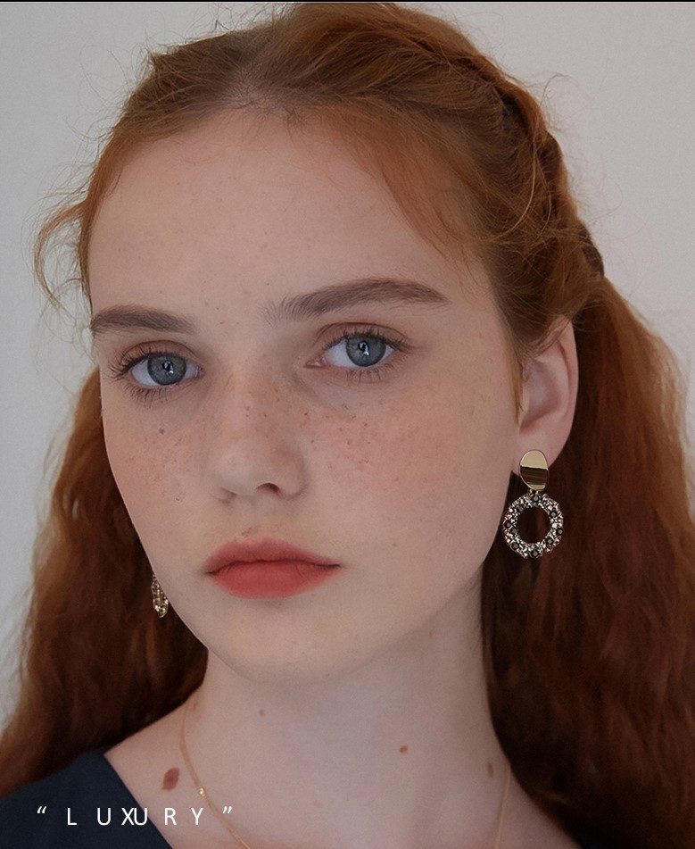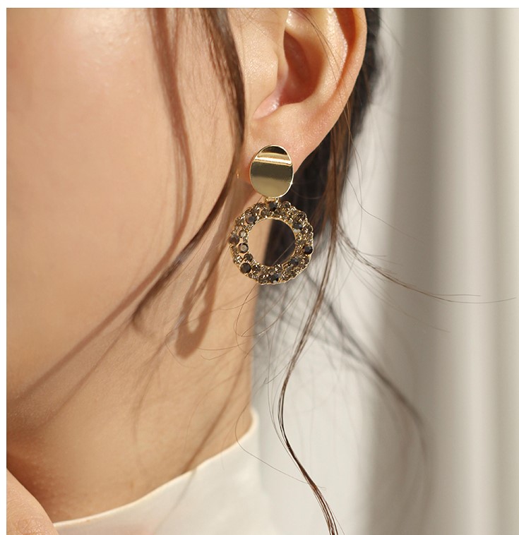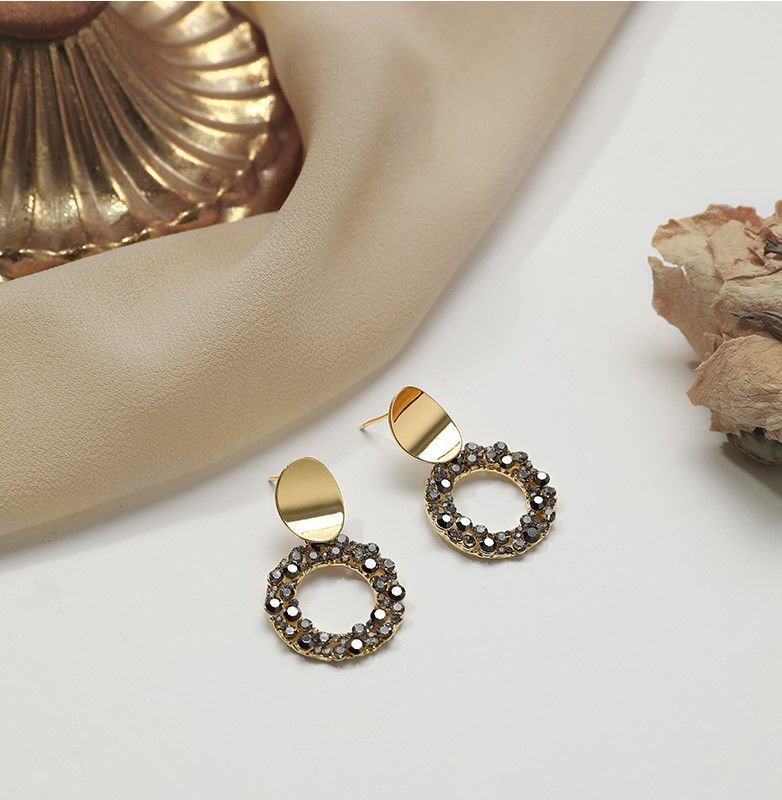 UZL DESIGN GOLD PLATED CIRCLE DROP EARRINGS IN BLACK CRYSTAL