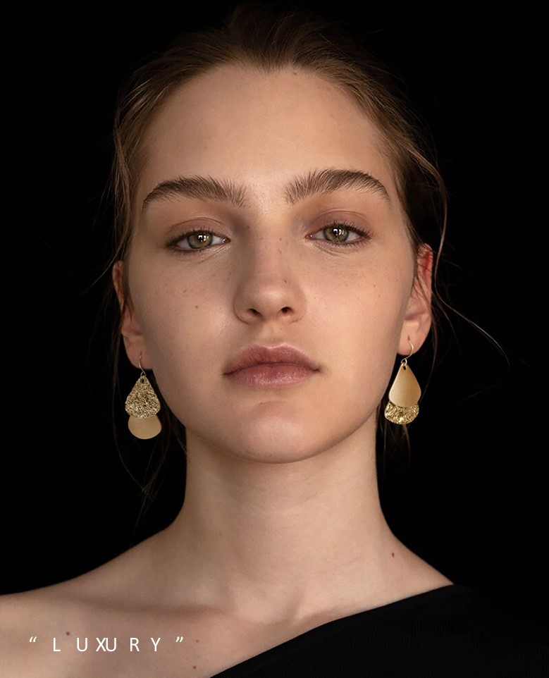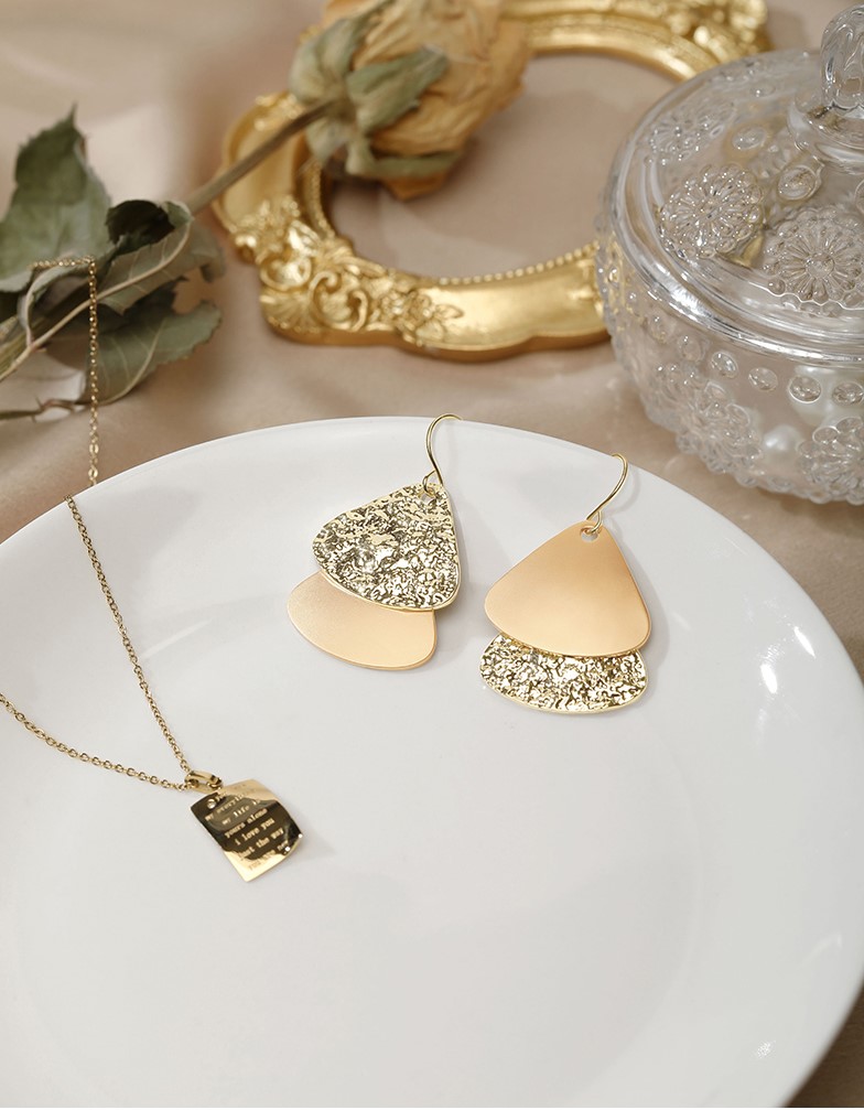 UZL DESIGN TEXTURED DROP EARRINGS IN GOLD PLATED