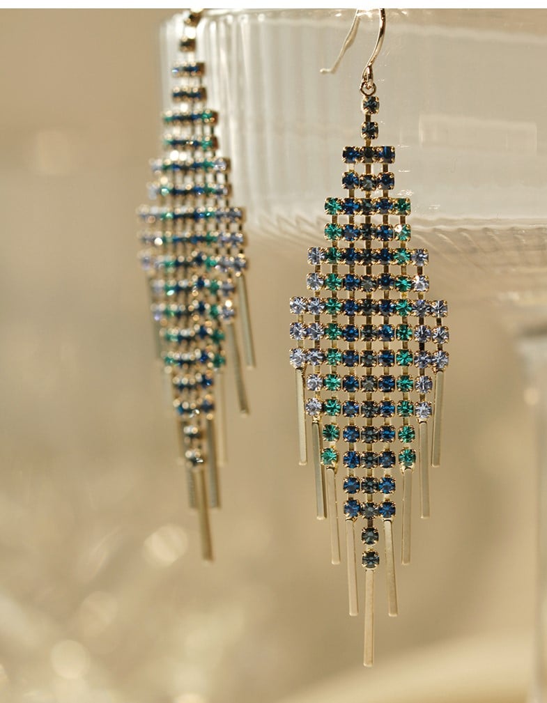 UZL DESIGN MULTI DIAMOND CHAIN DROP EARRINGS IN GOLD PLATED