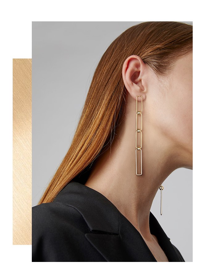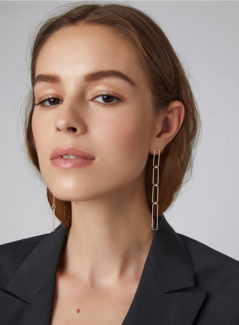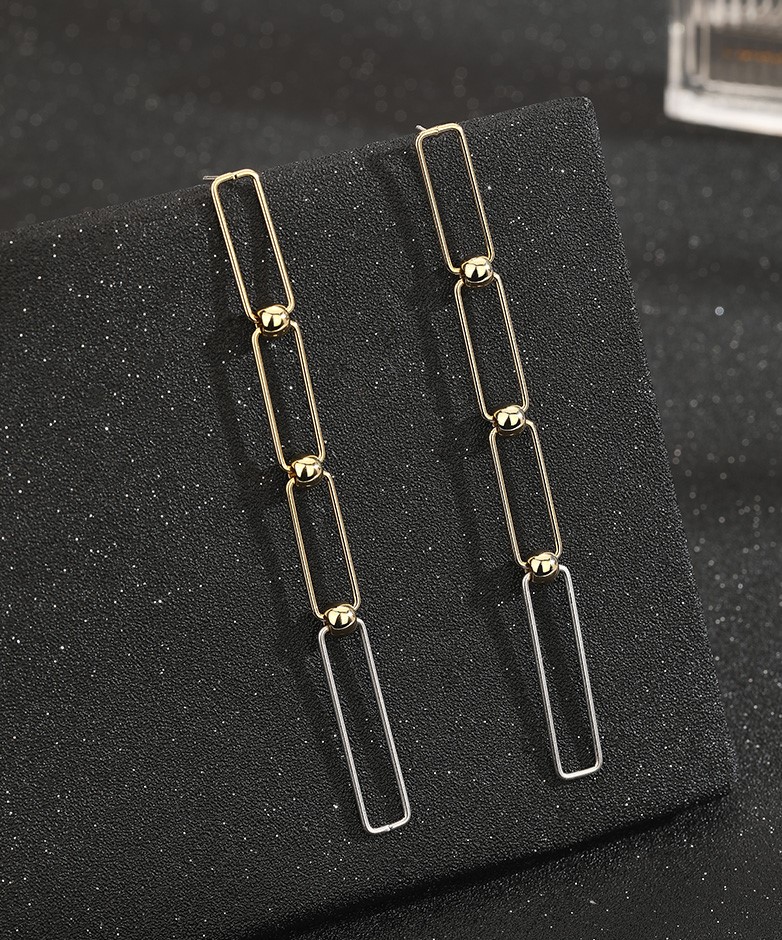 UZL DESIGN GOLD PLATED CHAIN DROP EARRINGS IN MIXED METAL