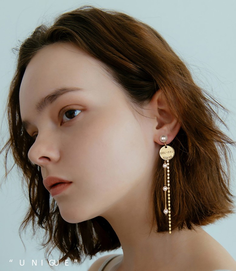 UZL DESIGN MIXED CHAIN HOOP AND COIN DROP EARRINGS IN GOLD PLATED