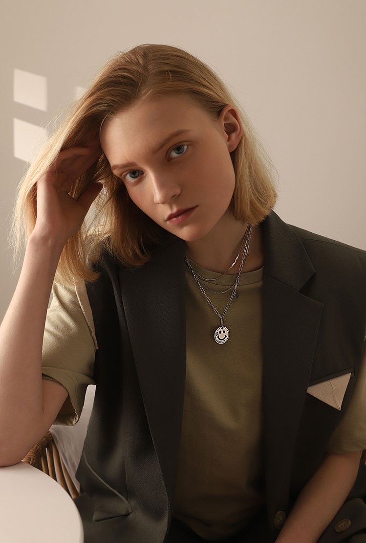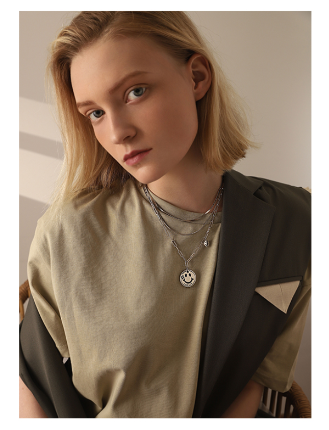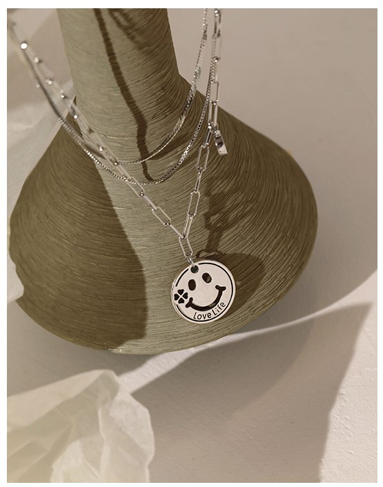 UZL DESIGN MULTIROW NECKLACE WITH OPEN LINK CHAIN AND SMILEY FACE PENDANT