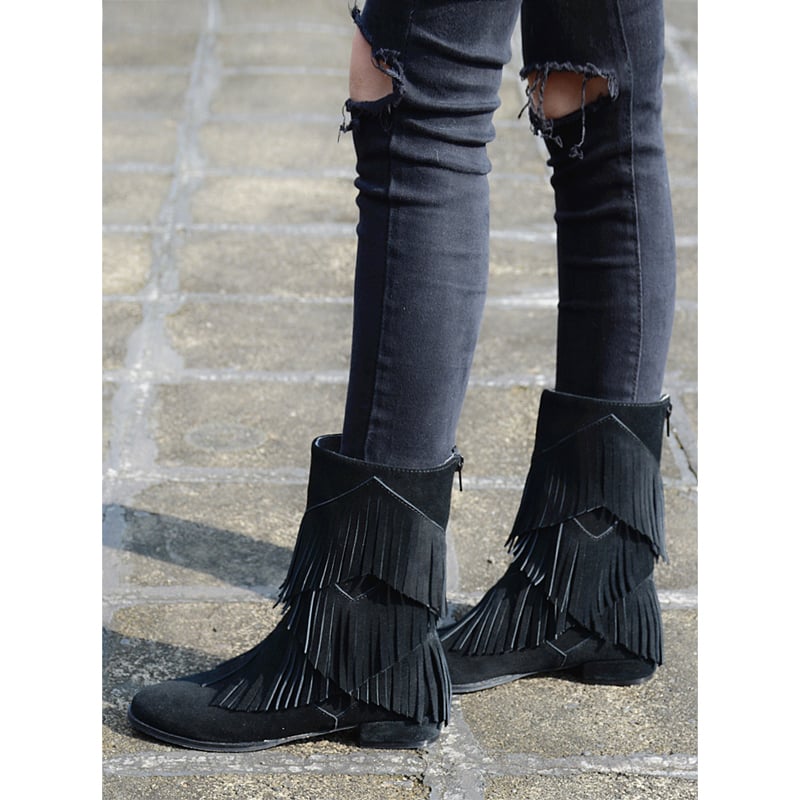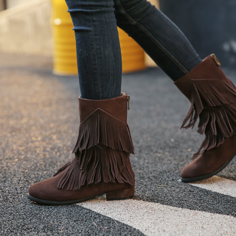 PROVA PERFETTO HANDMADE SIDE ZIPPER LOW HEELED BOOTS WITH TASSEL