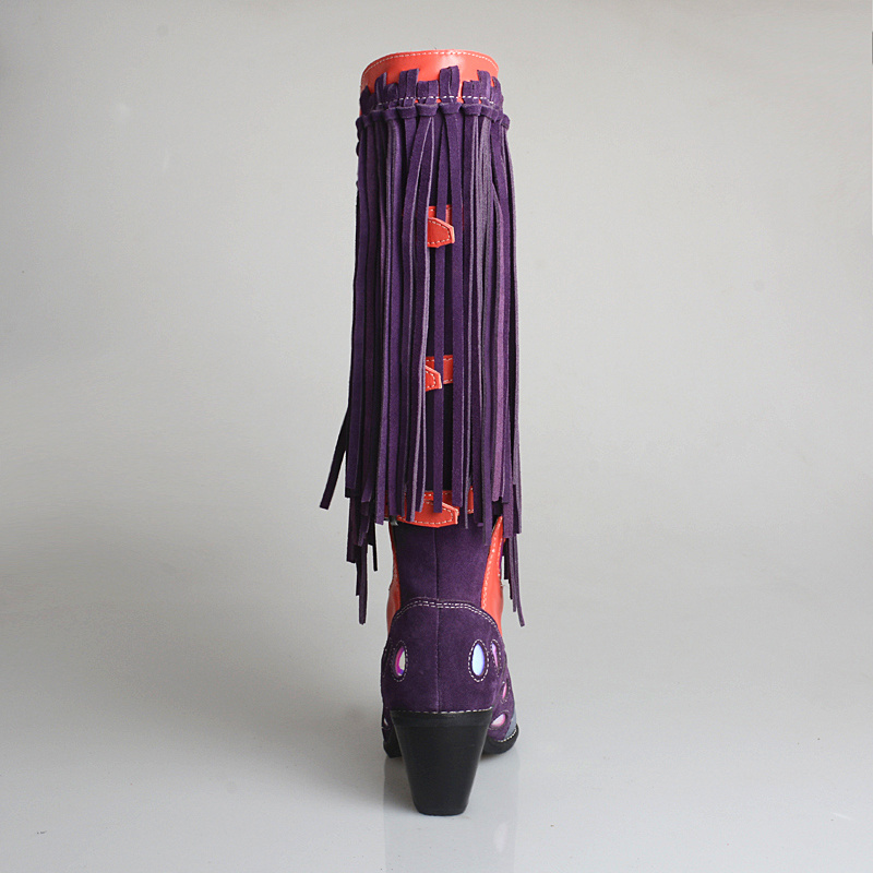 PROVA PERFETTO BOHEMIAN STYLE HIGH HEELED KNEE HIGH LEATHER SANDALS