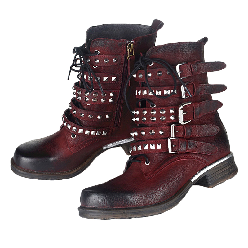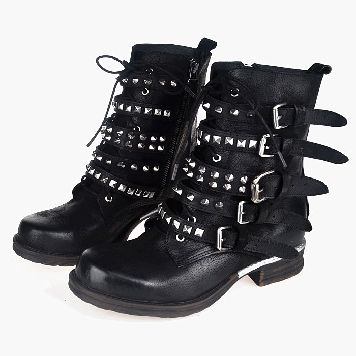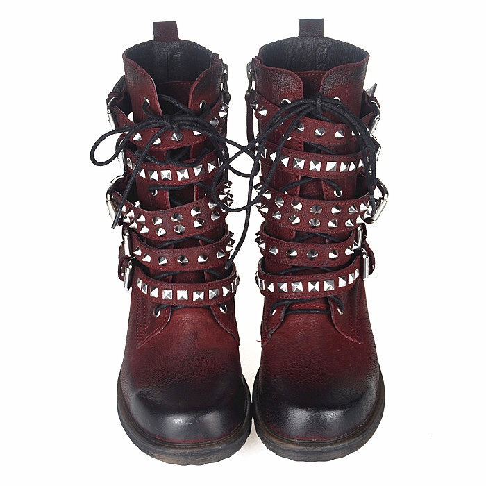 PROVA PERFETTO GOTHIC ANIME STYLE LEATHER WOMENS BOOTS WITH RIVET