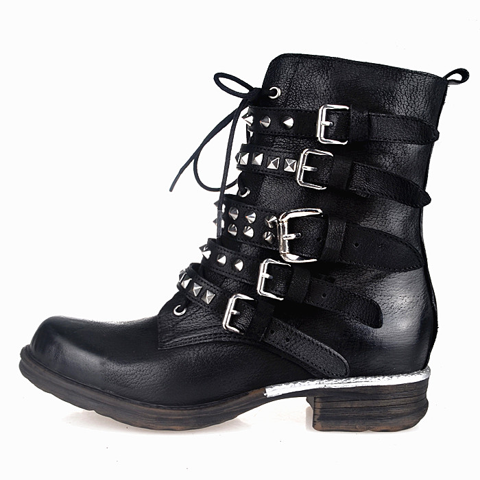 MOBONNIE QUEEN STUDIO HANDMADE LOOK BUCKLE LEATHER BOOTS IN BLACK