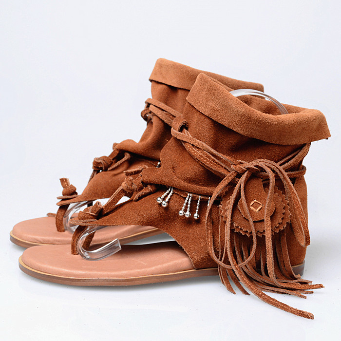PROVA PERFETTO ROMAN HERRINGBONE FLIP FLOP SANDALS WITH FRINGED