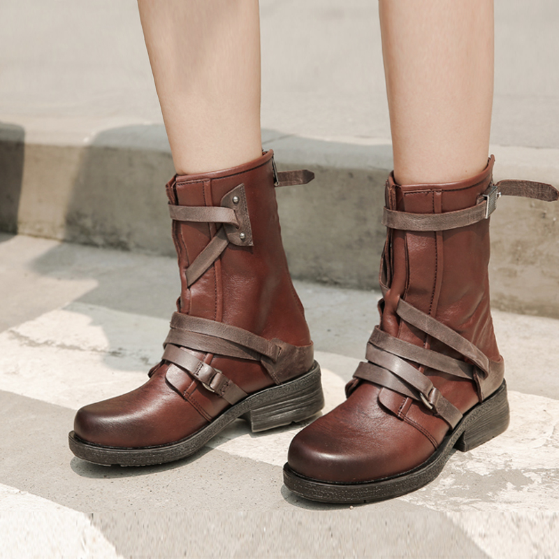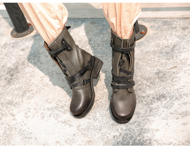 PROVA PERFETTO JENNIE FORZIA STYLE LEATHER ANKLE BOOTS WITH BELT BUCKLED