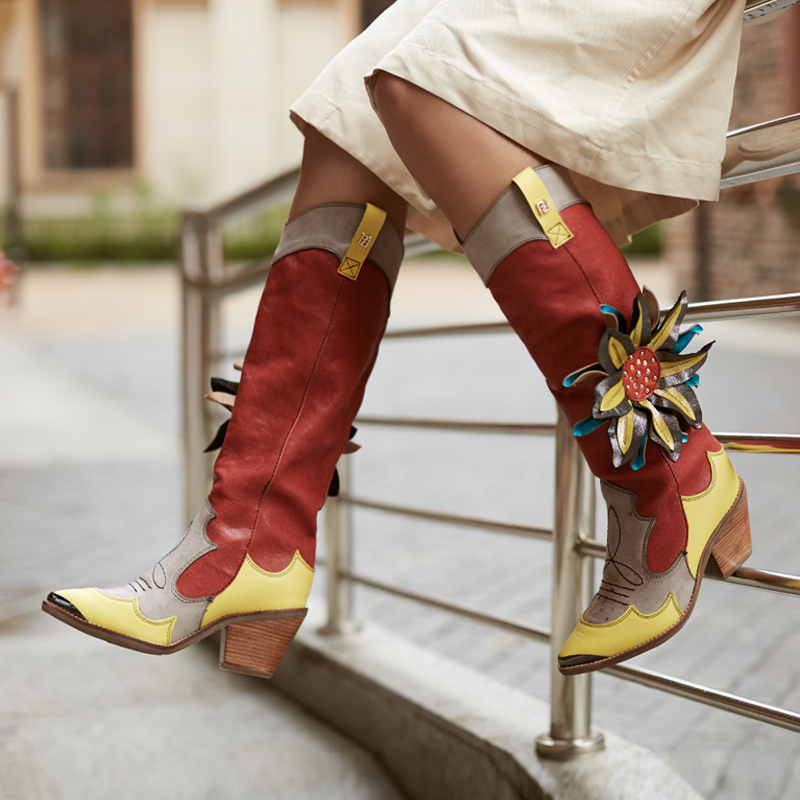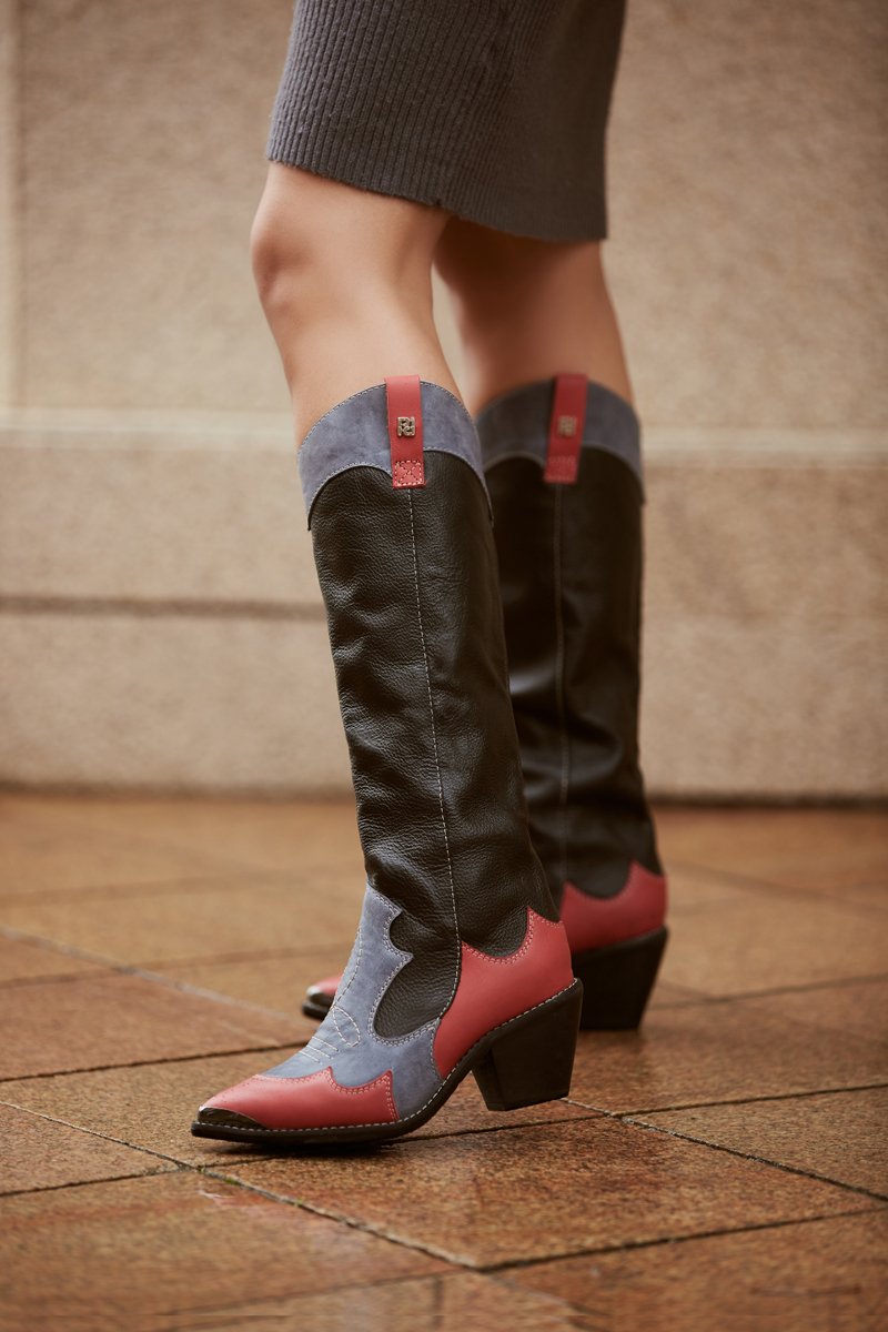 PROVA PERFETTO JENNIE FORZIA STYLE KNEE LENGTH HANDMADE LEATHER COWGIRL BOOTS