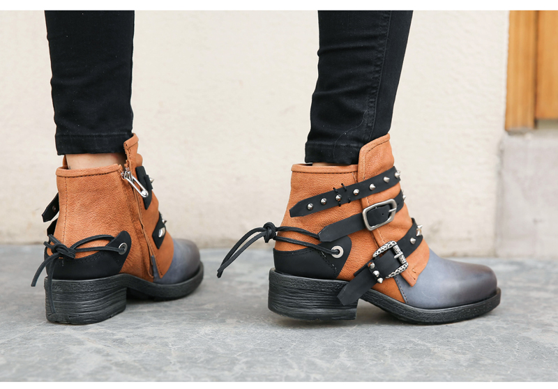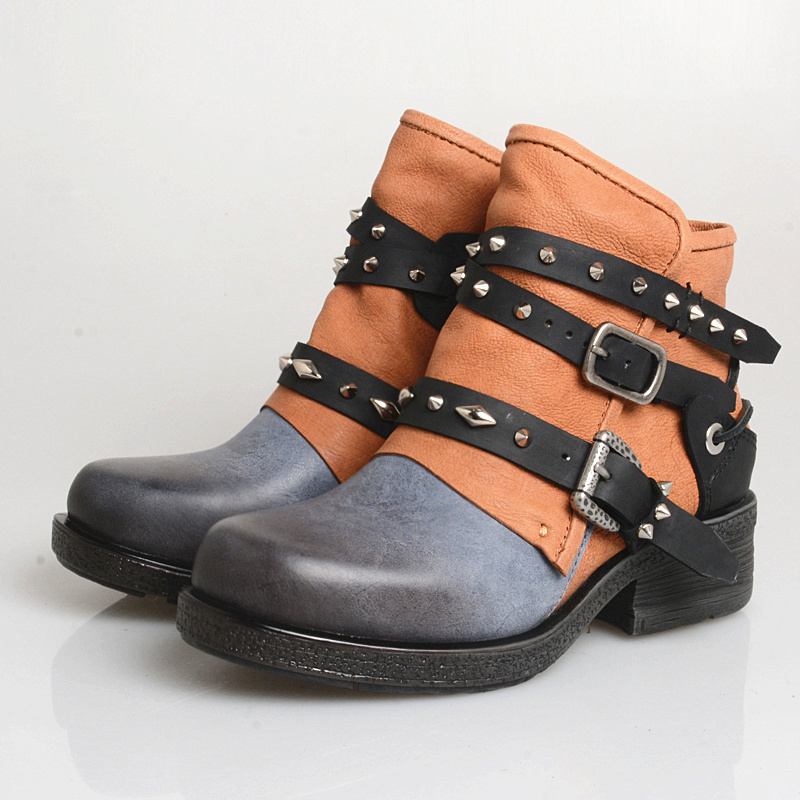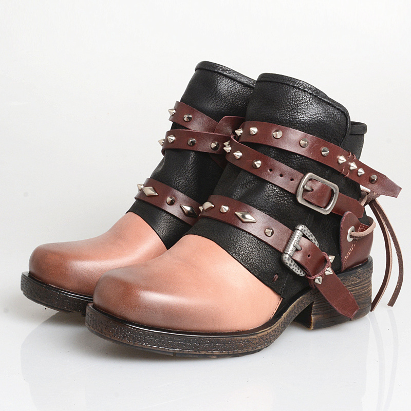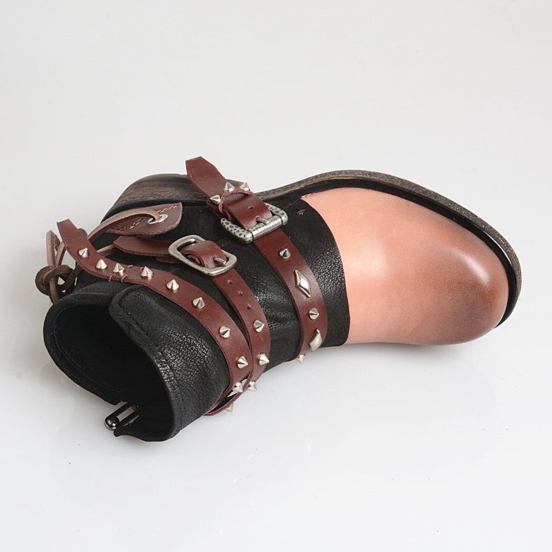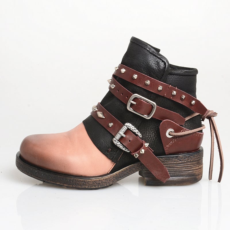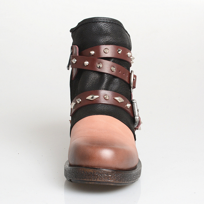 PROVA PERFETTO CATHRIN LENA RETRO DESIGN LEATHER ANKLE BOOTS WITH RIVET