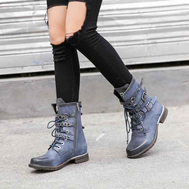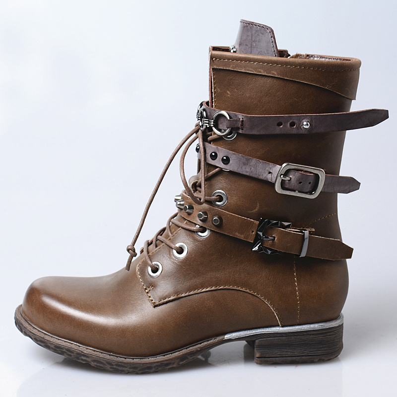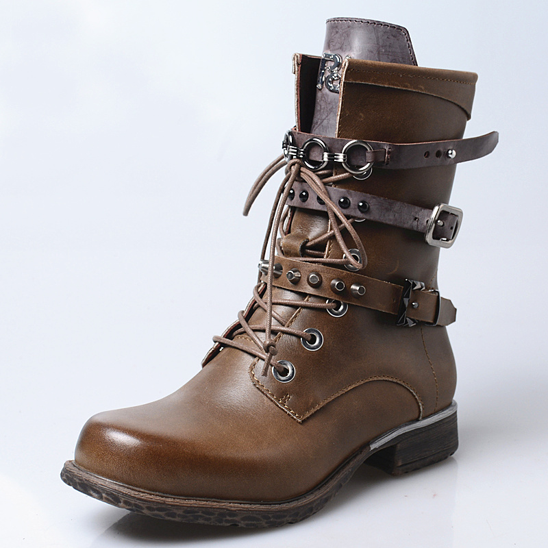 PROVA PERFETTO JULI PERRA BRITISH PUNK STYLE LEATHER BOOTS WITH RIVET