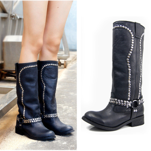 PROVA PERFETTO FOLBA ROBBO KNEE HIGH LEATHER BOOTS WITH RIVET