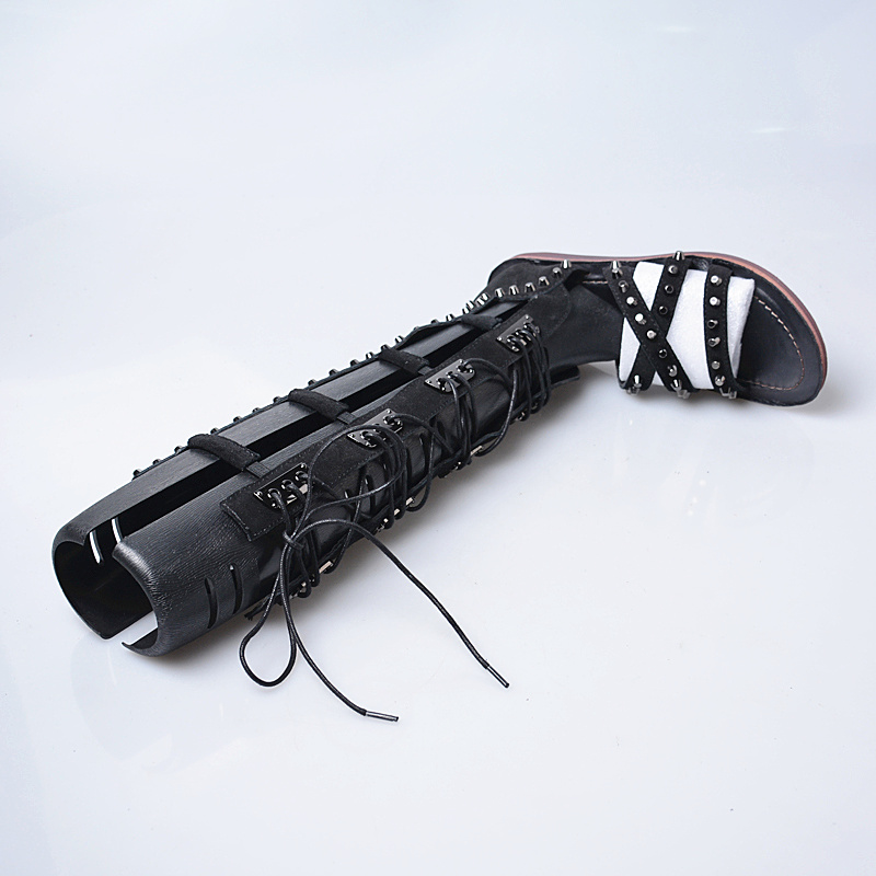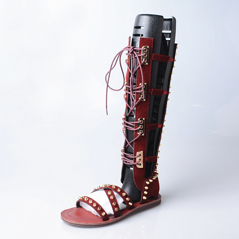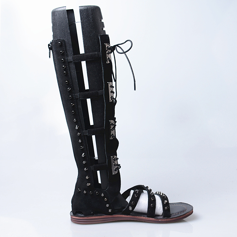 PROVA PERFETTO ROMAN KNEE HIGH GLADIATOR SANDALS WITH RIVET