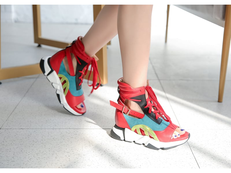PROVA PERFETTO KEZIE DEIZE CHUNKY SOLE WEDGED OPEN TOE SPORT SANDALS