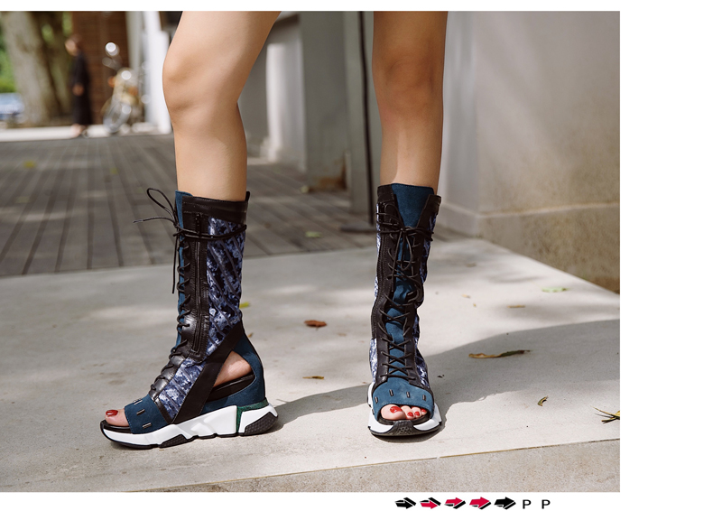 PROVA PERFETTO DEIZE CHUNKY SOLE WEDGED LEATHER BOOTIES SANDALS