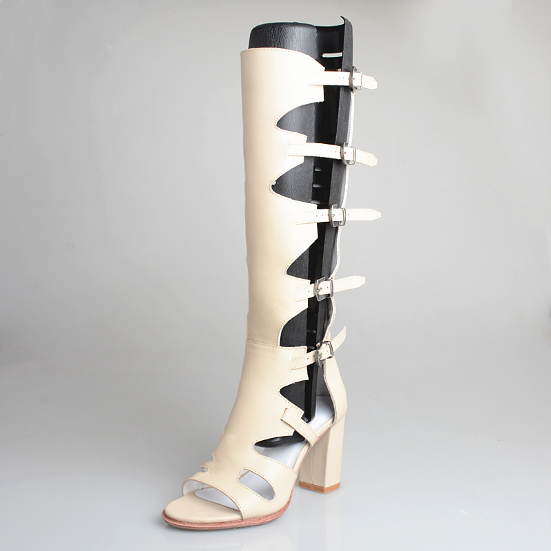PROVA PERFETTO BOHEMIAN STYLE HIGH HEELED KNEE HIGH LEATHER SANDALS
