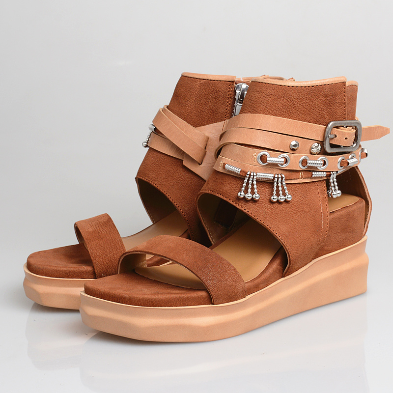 PROVA PERFETTO VOYZA ROMAN RETRO STYLE PLATFORM OPEN TOE LEATHER SANDALS