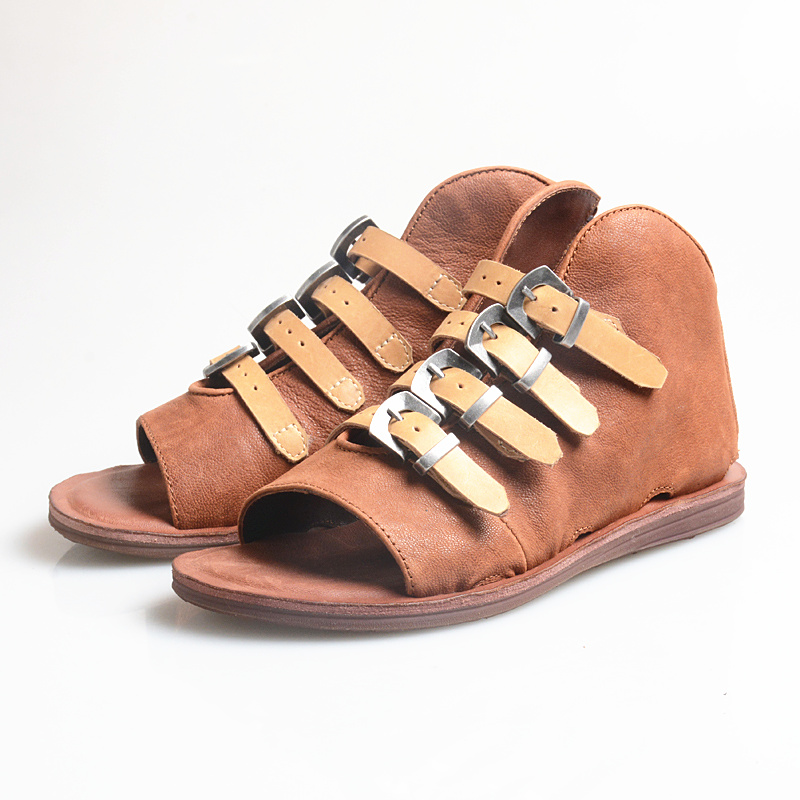 PROVA PERFETTO HUFFO ROMAN OPEN TOE FLAT SOLE LEATHER SANDALS