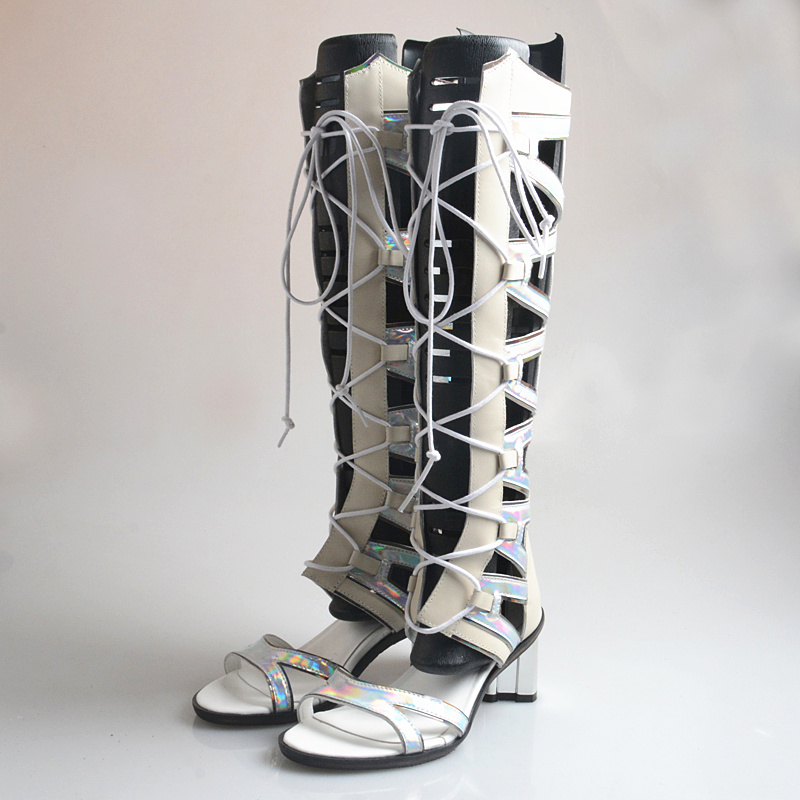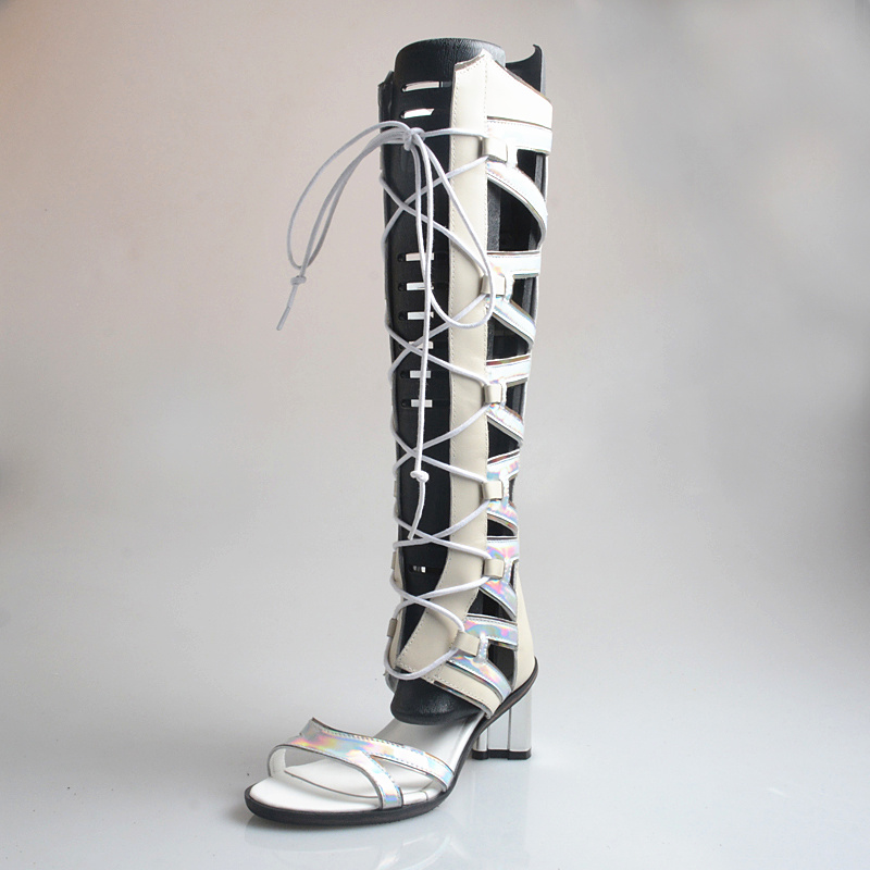 PROVA PERFETTO HUFFO WOFO OPEN TOE KNEE HIGH LEATHER SANDALS