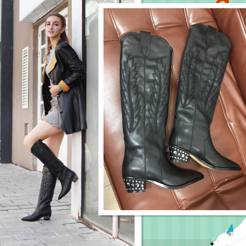 TEXSO BROOKLYN URBAN STYLE KNEE HIGH LEATHER COWGIRL BOOTIES