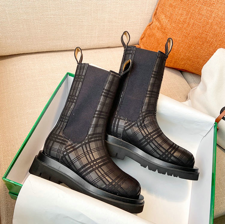 ZEGE MARTIN BRITISH URBAN STYLE PLAID CHELSEA BOOTIES