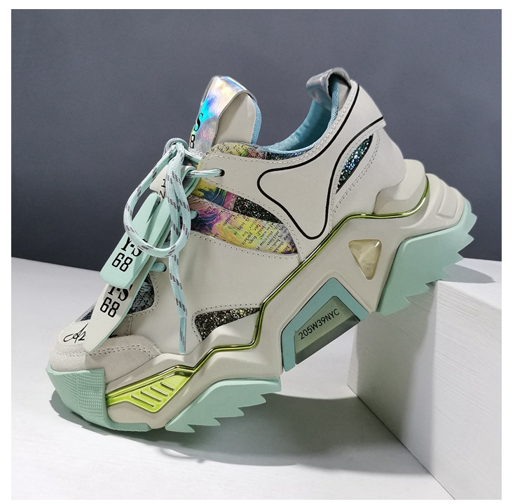 CERULEAN BREEZE URBAN STYLE CHUNKY SOLE LEATHER SNEAKER
