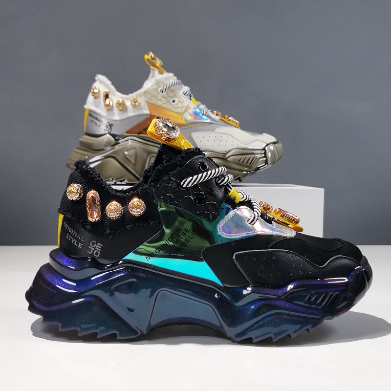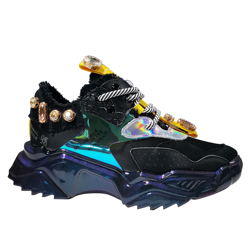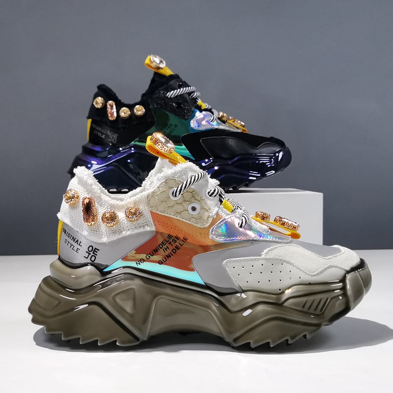 CERULEAN GAVIN CHUNKY SOLE LEATHER SNEAKER WITH RHINESTONE