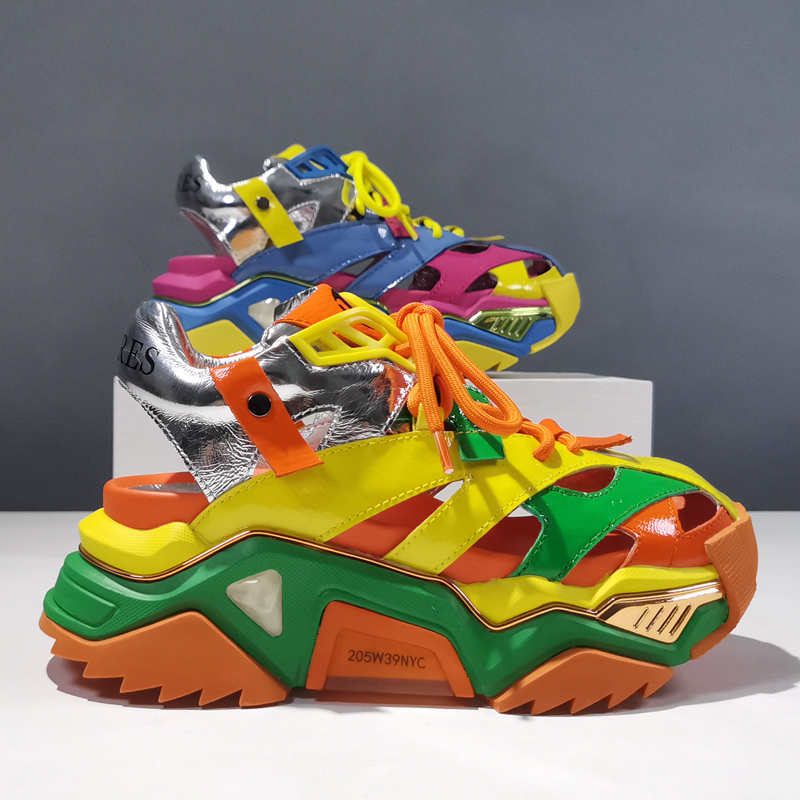 CERULEAN GAVIN CHUNKY SOLE LEATHER SANDALS IN MULTI COLOR