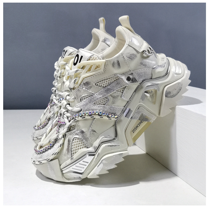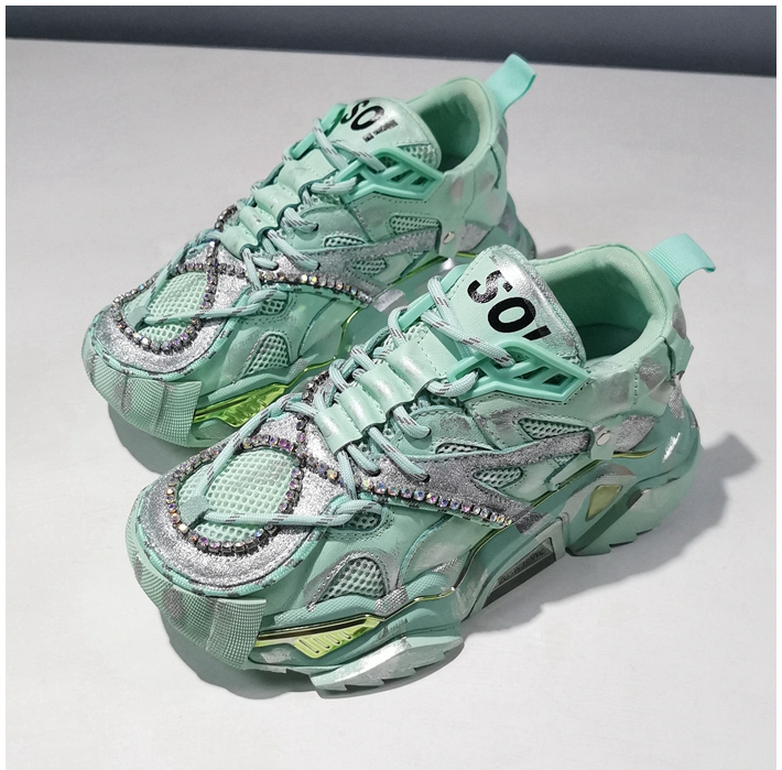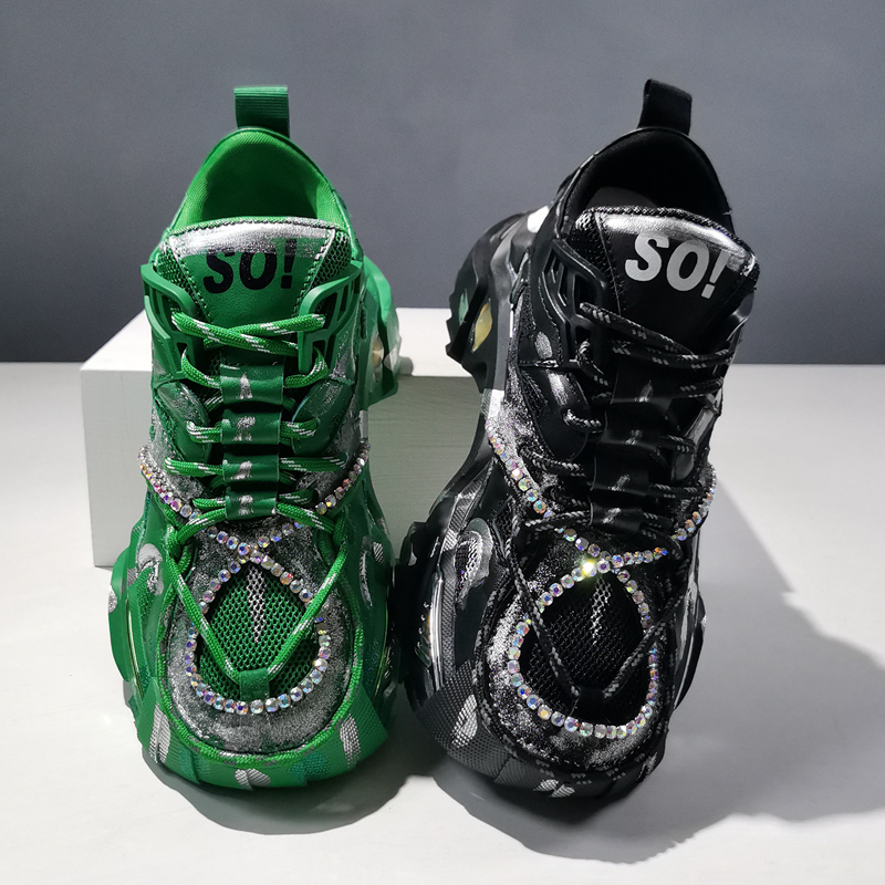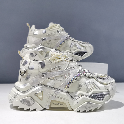 ANDREA LUKE CHUNKY SOLE LEATHER SNEAKER WITH RHINESTONE