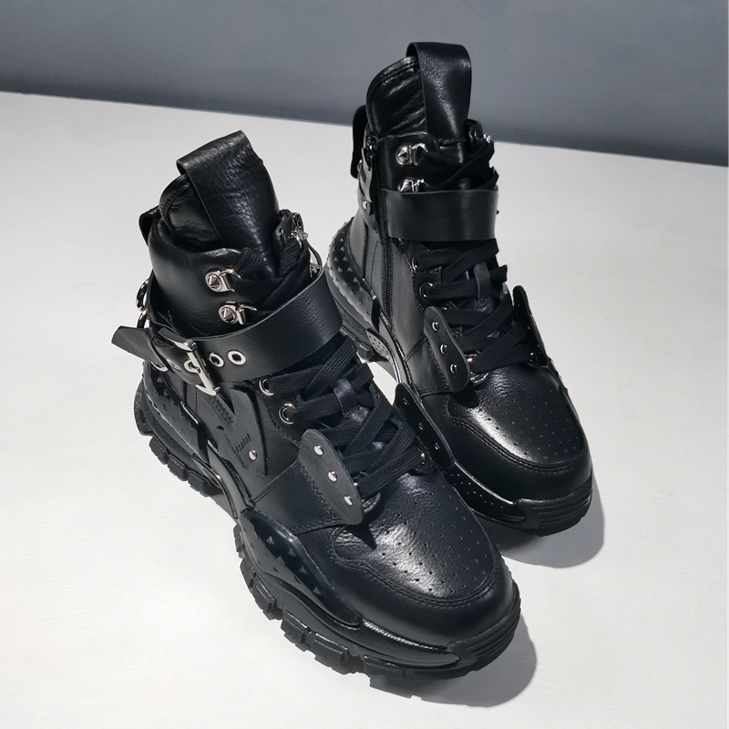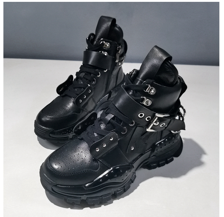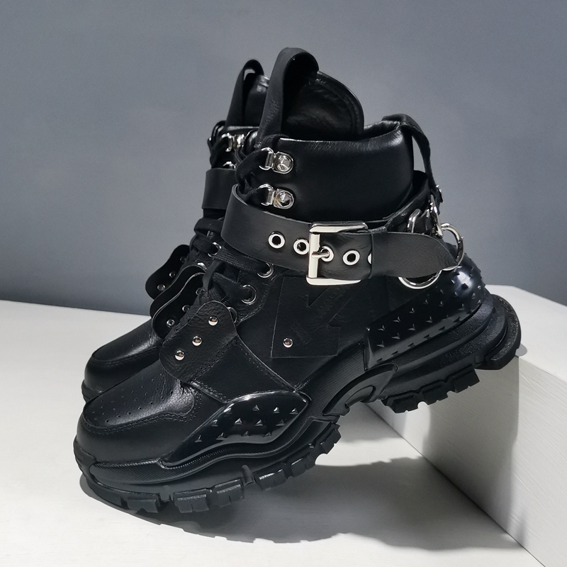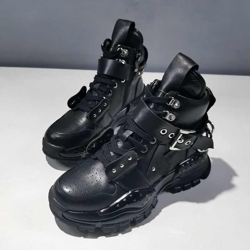 ZEBRANO COZZO CHUNKY SOLE HIGH TOP LEATHER SHOES IN BLACK