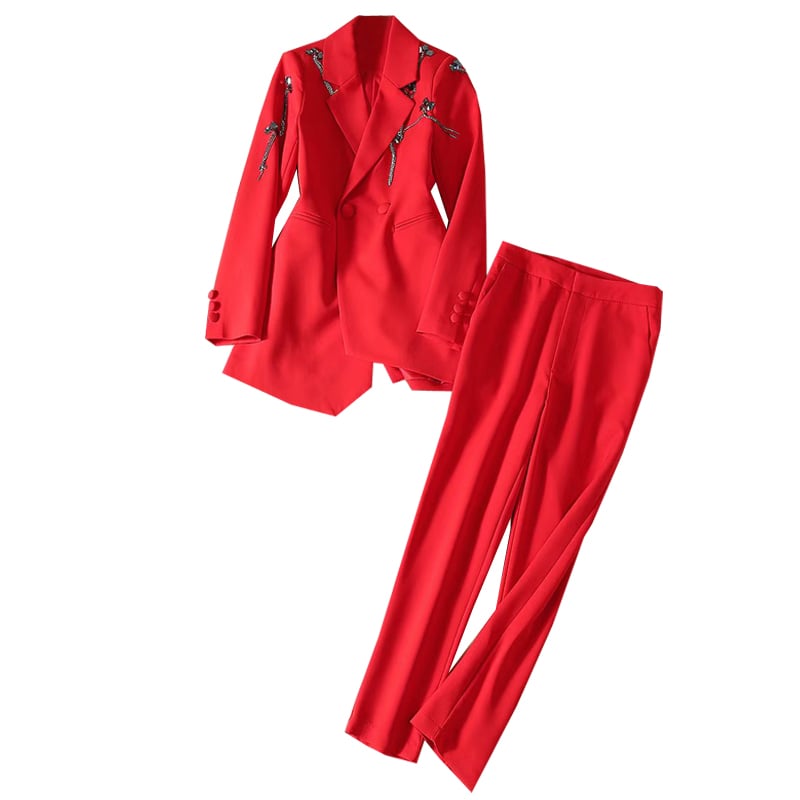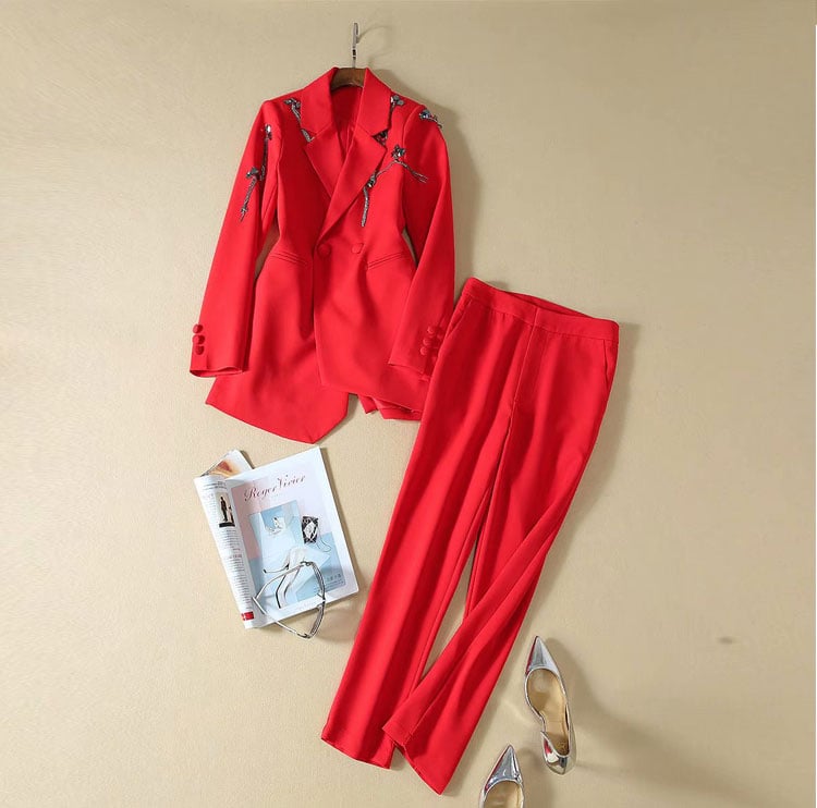 BBL DESIGN BEADED EMBELLISHED FRINGE DETAIL BLAZER AND MATCHING TROUSER CO ORD